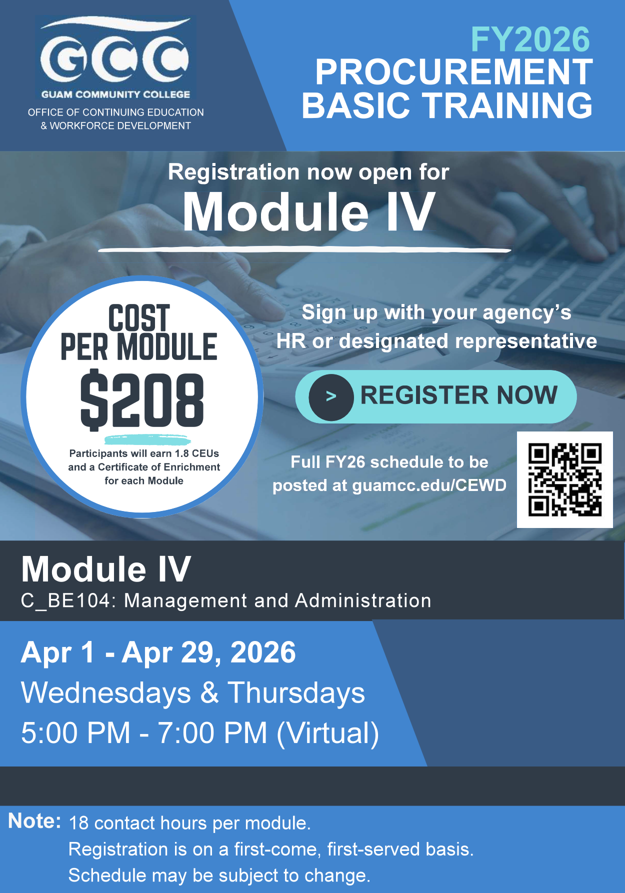 Continuing Education & Workforce Development courses are primarily skill-oriented and are designed to meet the specific training needs of those seeking to upgrade skills in their workplaces, as well as those seeking to develop work skills for entry or re-entry into the workforce. The courses vary in length, depending on the breadth and depth of the skill to be taught.