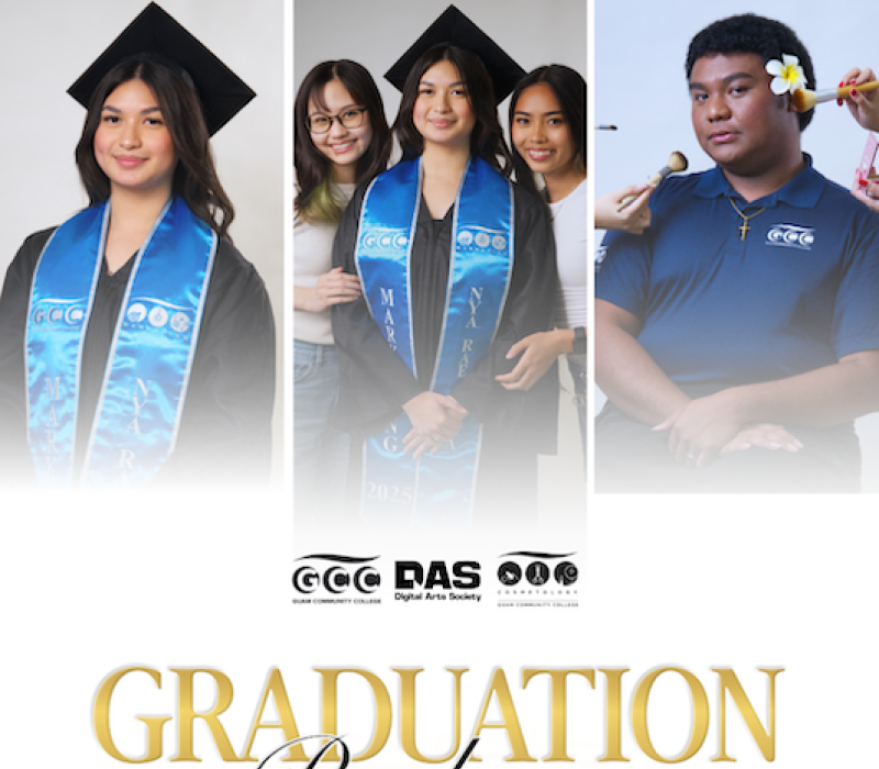 Book your appointment today! Make your graduation moment unforgettable! You've worked hard for this special achievement. Now, it's time to capture it while you look your absolute best. GCC's Digital Arts Society (DAS) x Cosmetologists United Together (CUT) is offering exclusive graduation deals on professional Photography and Hair & Makeup services, just for Guam Community College students. This is a limited, student-only deal, perfect for stunning grad photos you'll cherish forever.
