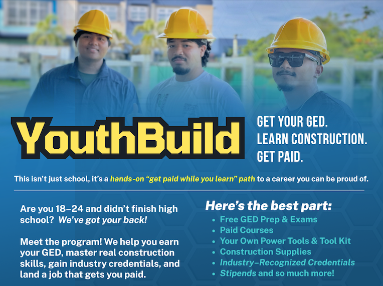 YouthBuild is a youth workforce development initiative that serves 18-24 year-old high-school stop-outs. The program helps students get their GED, gain skills, credentials, and certifications that eventually lead to gainful employment.