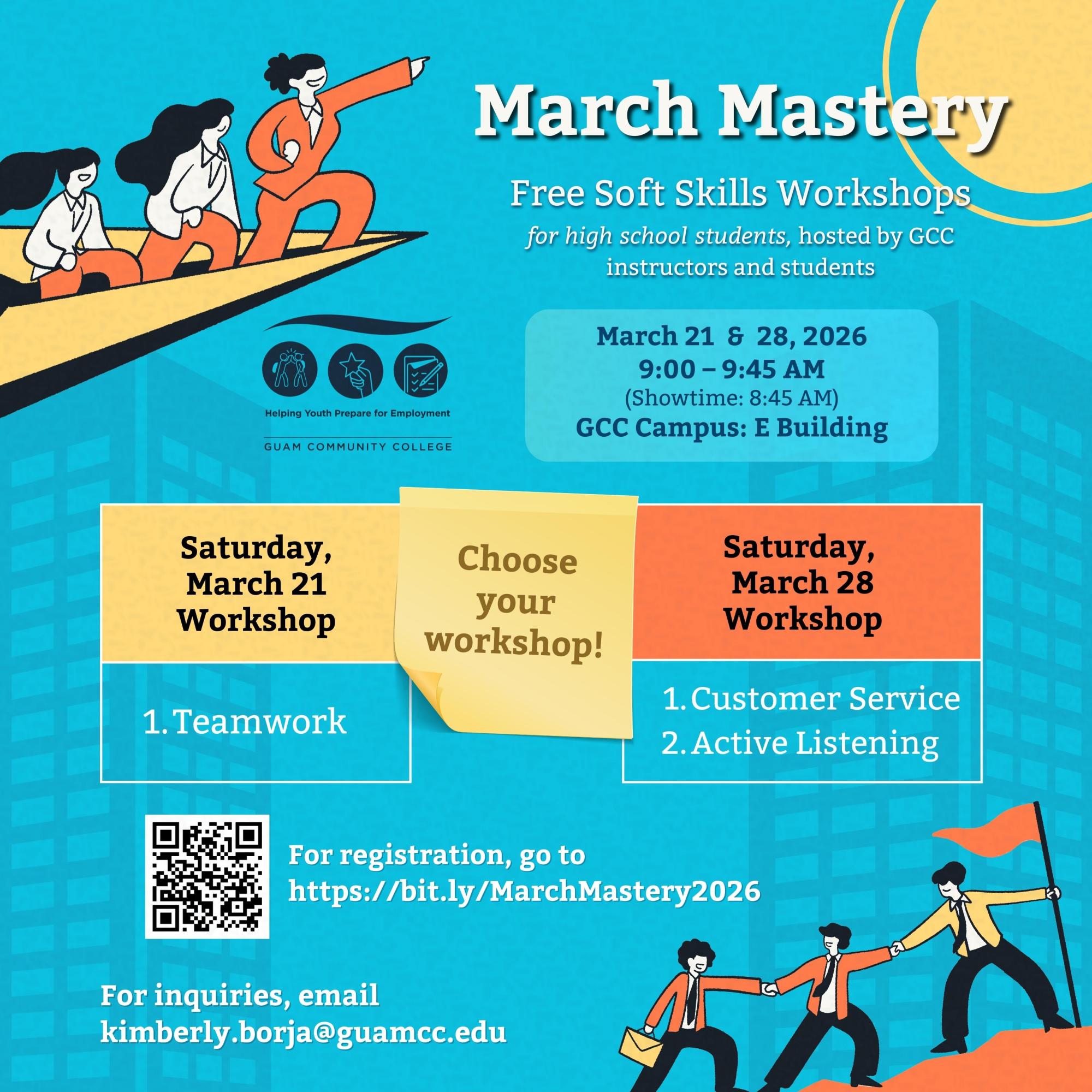 GCC is hosting March Mastery, a series of FREE workshops created for high school students to help you prepare for the work!